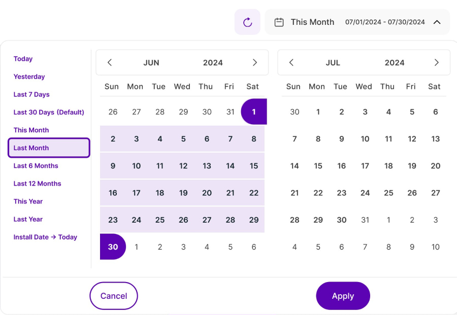 Wichtiger Hinweis: Die App merkt sich jetzt zuvor eingestellte Segmente, Filter, Filtervorlagen und Datumsintervalle, auch wenn Sie die Seite verlassen, sich abmelden oder wieder anmelden. Wenn Ihre Sitzung abläuft oder Sie die Registerkarte schließen, wechselt sie automatisch zur Standardeinstellung "Letzte 30 Tage" zurück.