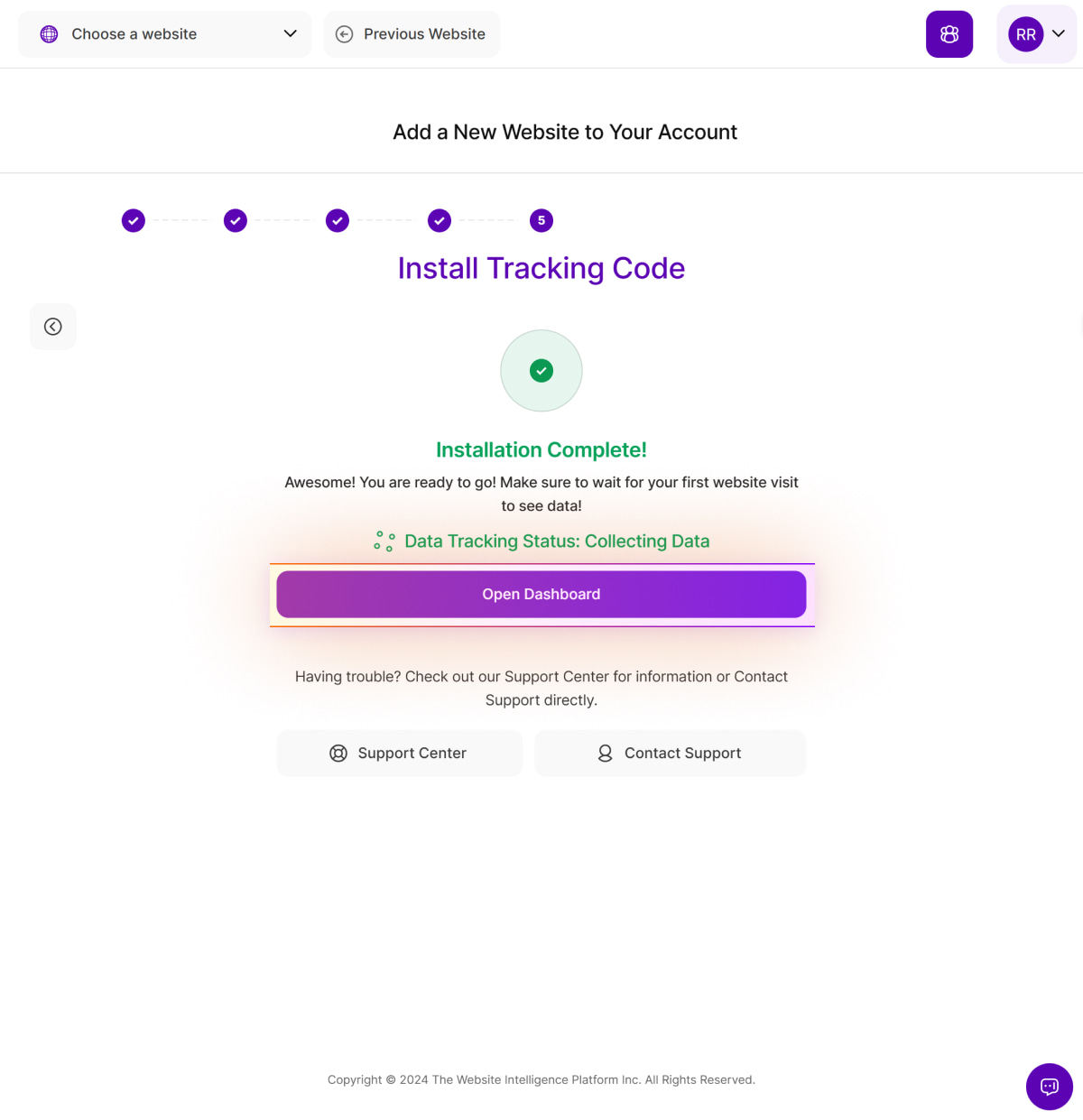 5. Ihre Website-spezifischen Tracking-Codes werden derzeit vorbereitet. Bitte warten Sie, bis der Vorgang abgeschlossen ist.