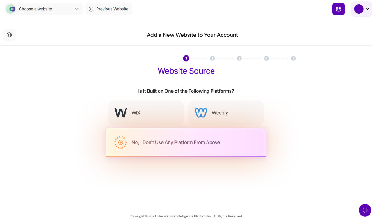 2. Wählen Sie die Quelle der Website, die Sie hinzufügen möchten. Wählen Sie die dritte Option"Nein, ich verwende keine der oben genannten Plattformen".